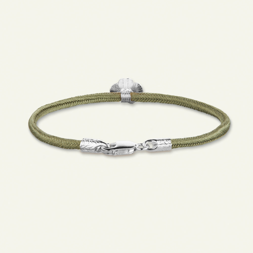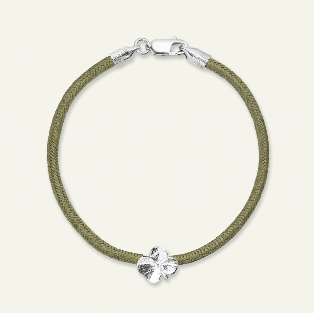 Firkløver silkearmbånd oliven, sølv