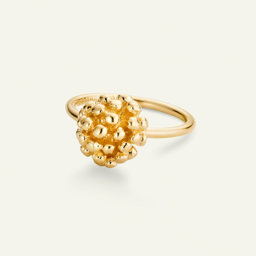Den elegante lille Dill-ringen er laget av sterlingsølv belagt med 22k gull. Dillblomsten som ble brukt til denne ringen ble plukket i Danmark for mange tiår siden. Elsket av kvinner over hele verden for det unike og organiske uttrykket.