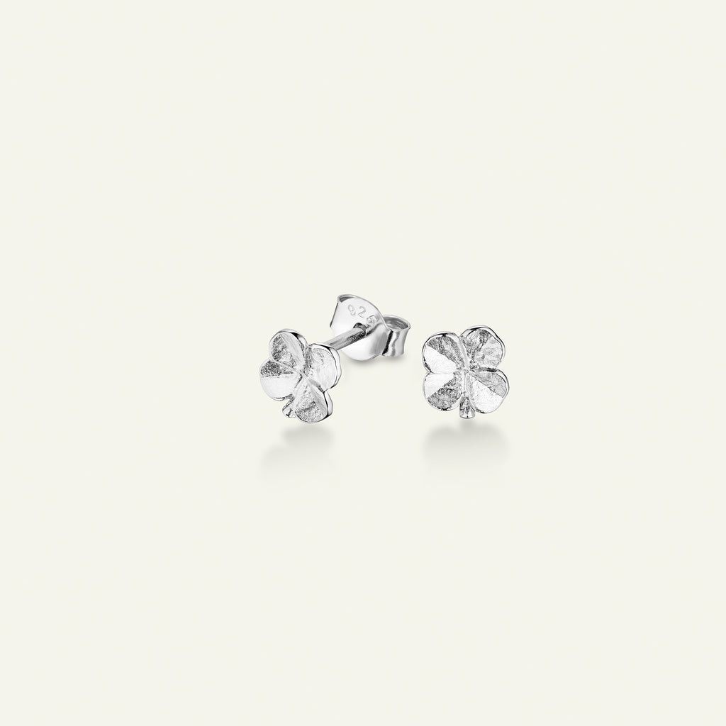 Firkløver små ørestikkere, sølv