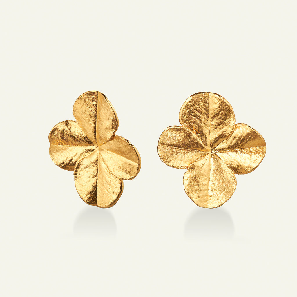 Den ægte firkløver der blev brugt til disse øreclips blev plukket i Danmark i 1950erne.