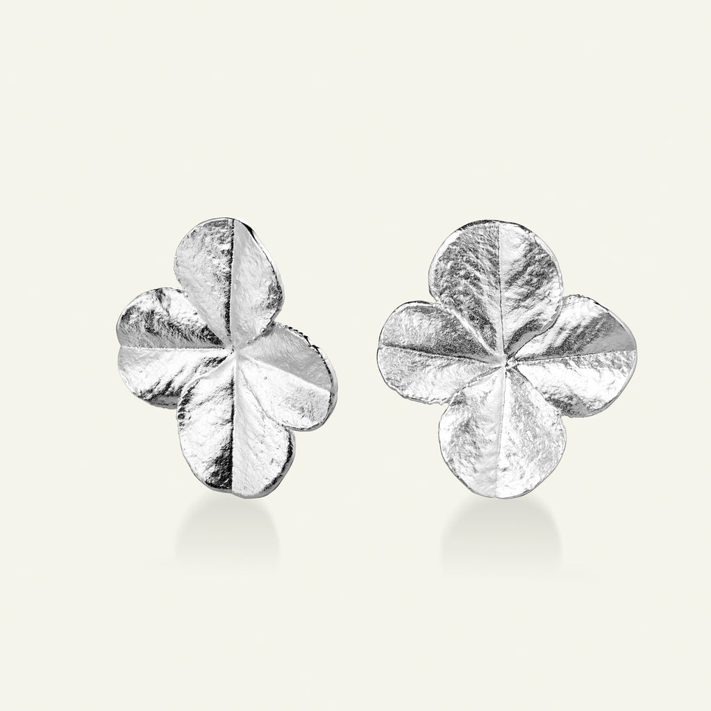 Den ægte firkløver der blev brugt til disse øreclips blev plukket i Danmark i 1950erne.