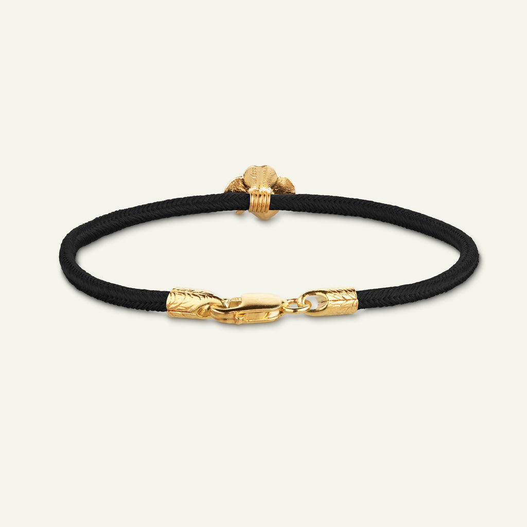 Firkløver silkearmbånd sort, forgyldt
