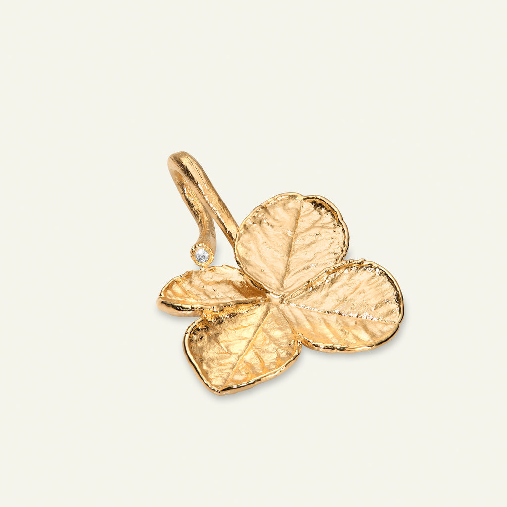 Stor og unik firkløver med en 0,02ct lys champagnefarvet diamant.