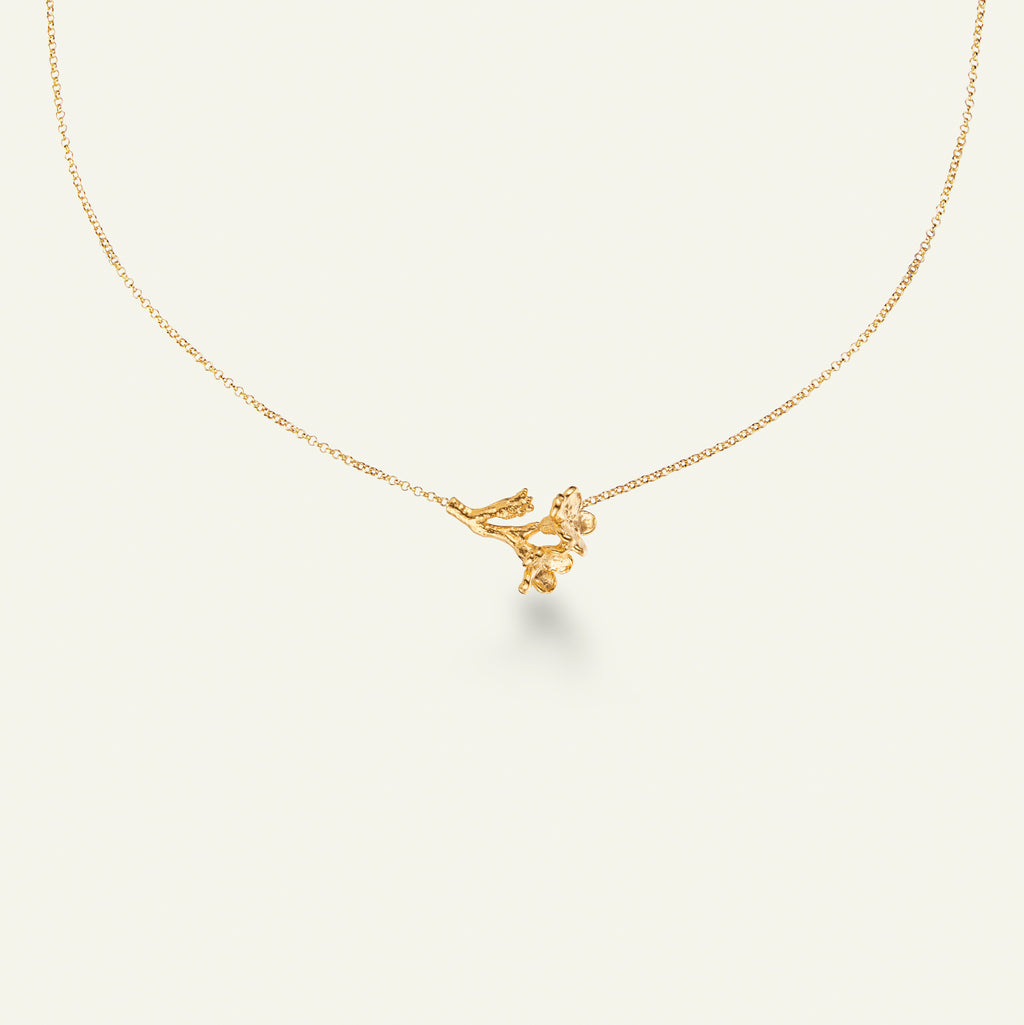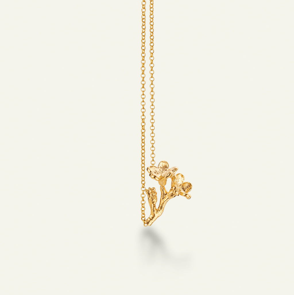 Forglemmigej blomst på stilk, halskæde med vedhæng, forgyldt