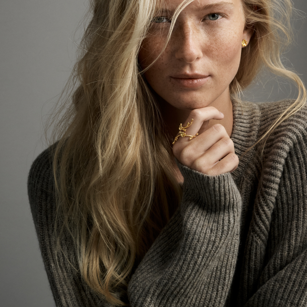 Den nye forglemmigej statement ring er håndlavet i høj kvalitet og skabt med den største respekt for miljø og bæredygtighed i både produktion og materialer. Ringen er fremstillet i 100% genanvendt sterlingsølv med en 22 karat forgyldning.