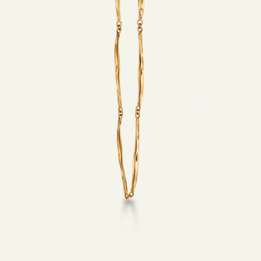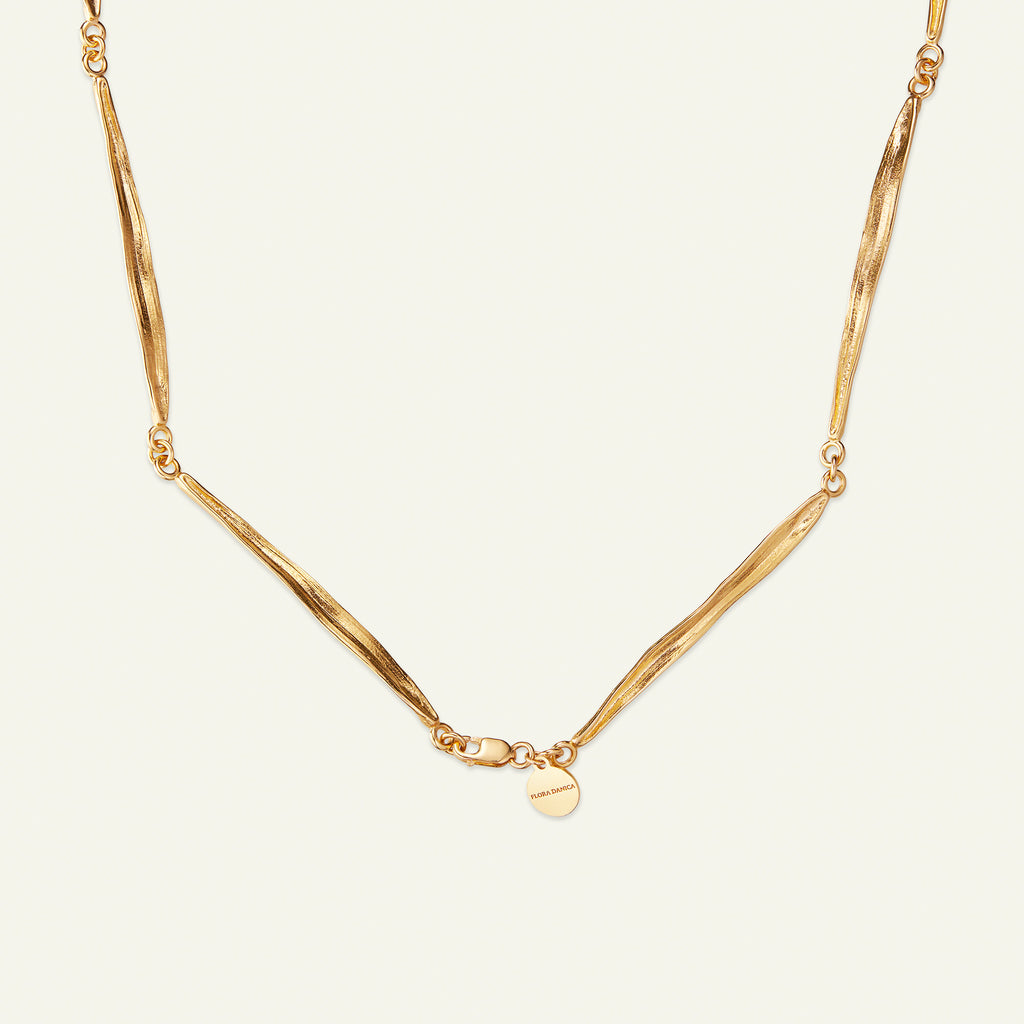 Med sin naturlige og organiske form forstærker Flora Danicas græs halskæde din egen naturlige skønhed. Den elegante kæde er skabt i sterlingsølv forgyldt med 22 karat guld. Et markant, sofistikeret og unikt smykke fra Flora Danicas ikoniske græs kollektion. I fuld længde måler kæden 60 cm men nemt laves kortere ved blot at sætte låsen anderledes på kæden.