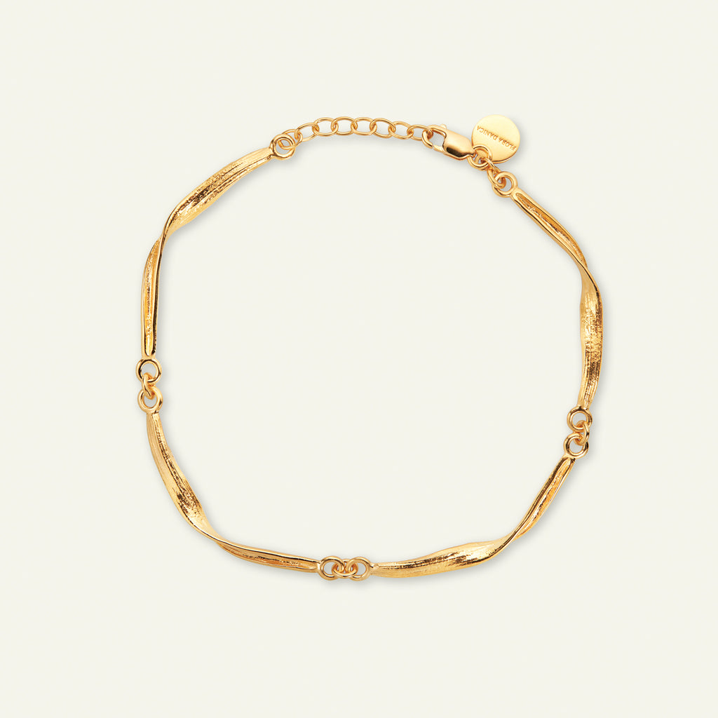 Armbåndet er håndlavet i høj kvalitet og skabt med den største respekt for miljø og bæredygtighed i både produktion og materialer. Armbåndet er fremstillet i 100% genanvendt sterlingsølv med 22 karat forgyldning. Længden er justerbar: Fra 17 til 19 cm.