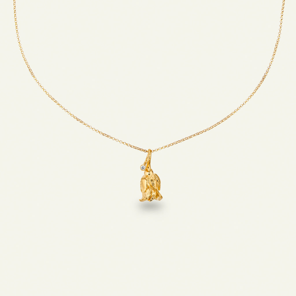 Vedhænget er formet efter en ægte dansk rose, bevaret i Flora Danicas historiske arkiver og genskabt i forgyldt sterlingsølv med største respekt for naturens fine detaljer. De bløde kronblade og organiske linjer fremhæver rosens naturlige ynde.