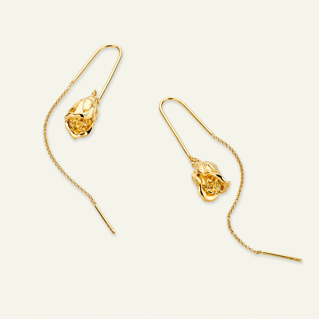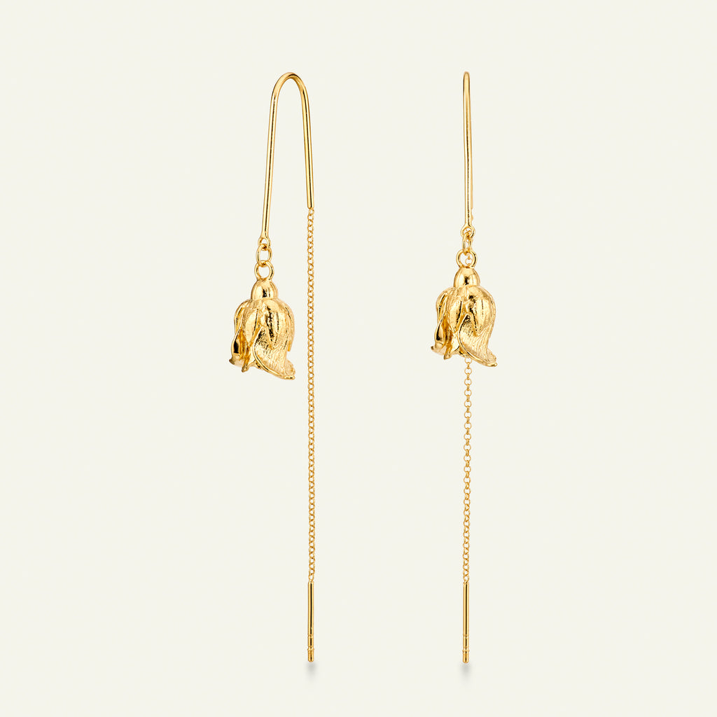 Øreringene er håndlavet i 100 % genanvendt sterlingsølv og belagt med 22 karat bæredygtigt, genanvendt guld – et udtryk for håndværk, respekt for naturen og tidløs skønhed.