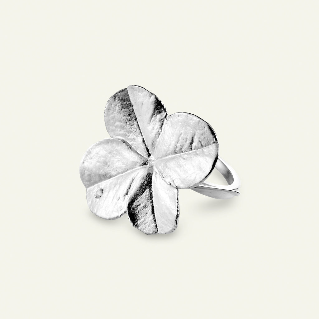Den store Firkløver ring er den mest ikoniske og populære Flora Danica ring. De fire blade repræsenterer tro, håb, kærlighed – og det fjerde og meget sjældne blad repræsenterer held.